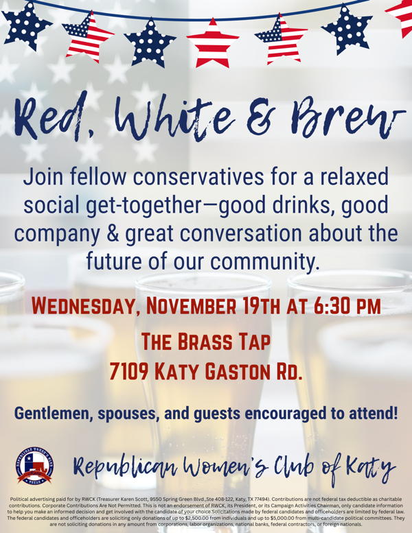 Join fellow conservatives for a relaxed social get-together — good drinks, good company, and great conversation about the future of our community.